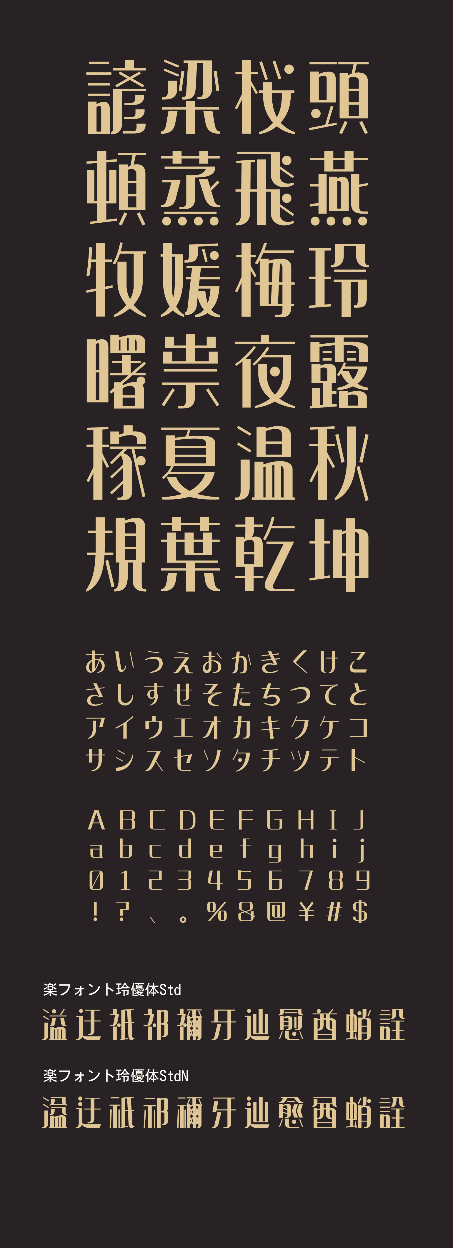 本製品はJIS90字形のStdとJIS2004字形のStdNを2つのフォントが収録されています。