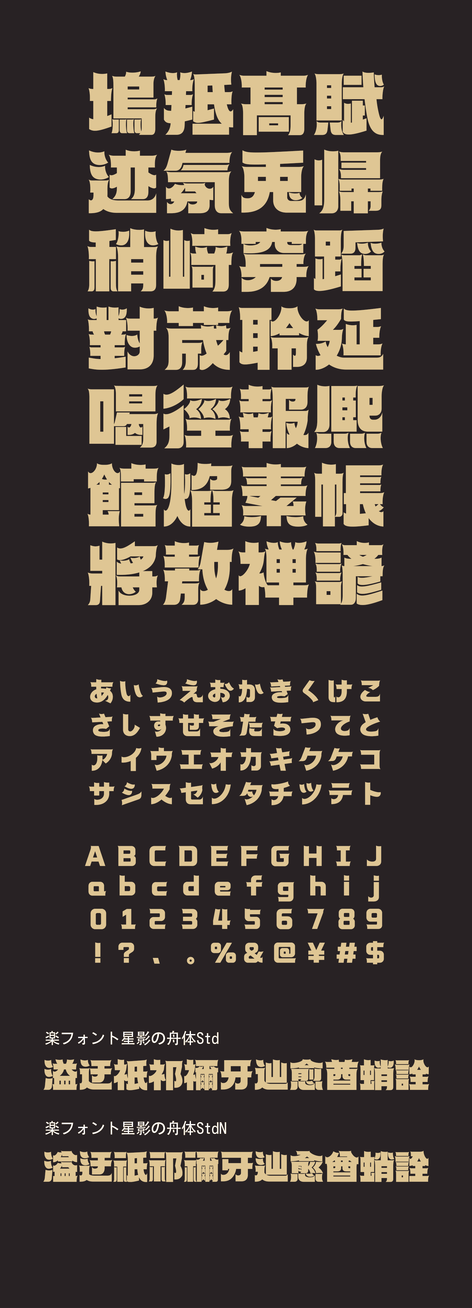 本製品はJIS90字形のStdとJIS2004字形のStdNを2つのフォントが収録されています。